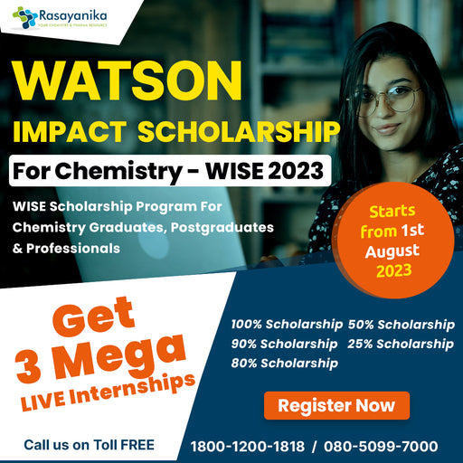 WISE - Watson IMPACT Scholarship for Excellence 2023 For Chemistry graduates & postgraduates Want to become a researcher in the field of chemis...
